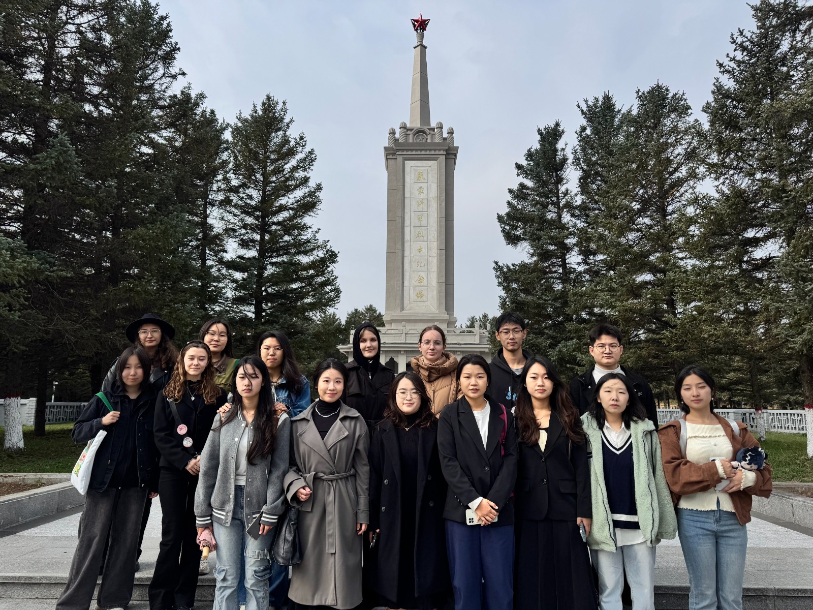中俄师生向苏蒙联军烈士纪念塔敬献了鲜花,向在1945年8月狼窝沟战斗中牺牲的苏蒙烈士致敬;参观了陵园的展览,在讲解员深情讲述中,重温了狼窝沟战斗的英勇过程,共同分享了参观感受。本次活动,使师生们受到了一次伟大抗战精神和国际主义教育。