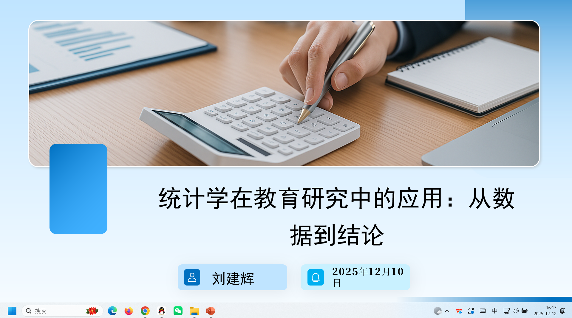 2025年12月10日下午,一场题为“统计学在教育研究中的应用:从数据到结论”的讲座在西校区国交三楼报告厅成功举办。本次讲座由法政公司应用心理学系副主任刘建辉老师主讲,面向永利集团3044教师及英语系22级、23级本科生与学科教学(英语)研究生。